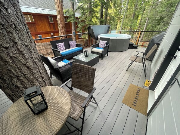 Terrace/patio - Sweet Pine | Deck + Hot Tub, Cozy Modern Interior | Close to Ski Resort! (Tahoma)