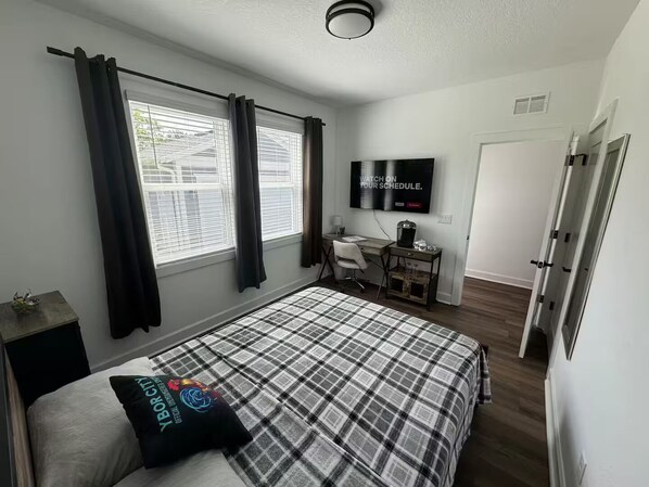 Whether you're visiting for work or leisure, the space has you covered. Enjoy high-speed WiFi, stream your favorite shows on the large flat-screen TV, or make use of the dedicated workspace - ideal for remote work or business travelers.