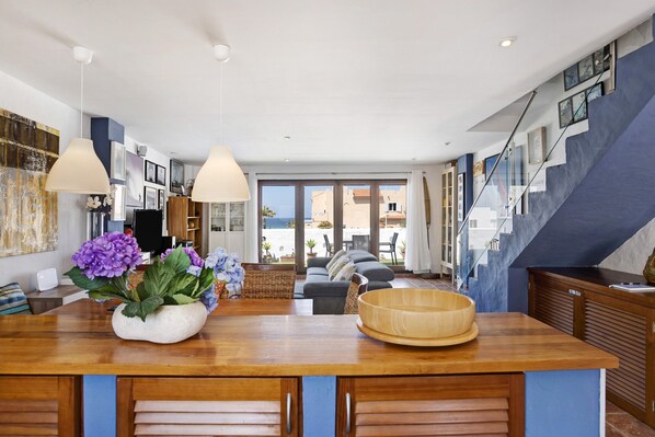 The apartment "Duplex con vistas al mar" is located just 5 minutes walk from the beach in the resort of Tarifa in the Andalusian province of Cadiz and is also the southernmost point of mainland Europe. The modernly furnished apartment has a living room, a well-equipped kitchen with water filter and dishwasher, 2 bedrooms, 2 bathrooms (one with bathtub, the other with shower and bidet) and thus accommodates 4 people. Additional amenities include Wi-Fi (suitable for video calls), 2 TVs (one with Chromecast) and a washing machine. A crib is also available upon request.