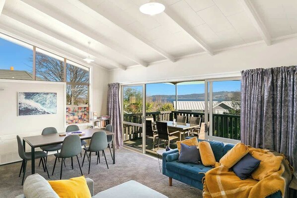 Welcome to this family-sized home in Taupo, perfectly set up for year-round holidays with 9 guests. Enjoy the relaxed atmosphere, deck, and lake views or fire up the BBQ. You're close to DeBretts thermal baths and tranquil botanical gardens.