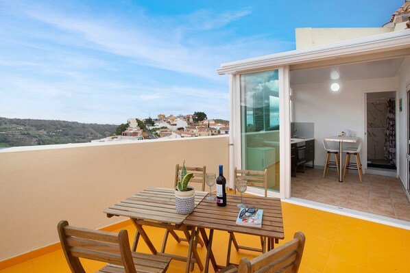 The highlight of this accommodation is a spacious private open terrace where you can enjoy the view of the surroundings. Guests also have access to a shared 400 m² outdoor area, consisting of a garden, trees, hammocks and a barbecue.