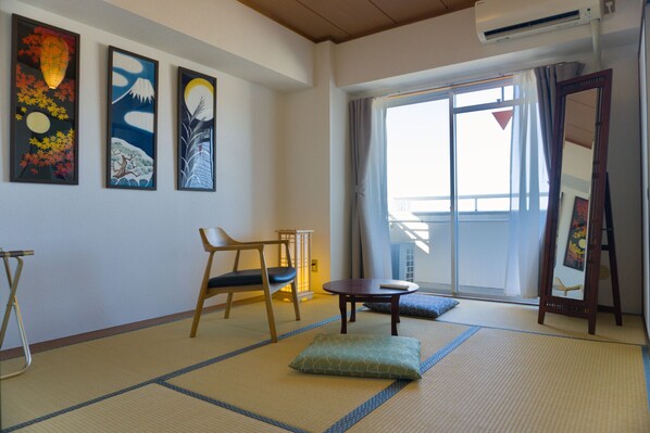 The flat is located on the top floor of a peaceful residential building. The west-facing rooms offer a magnificent view of Tokyo and breath taking sunsets!