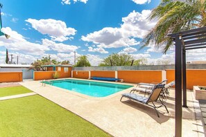 Welcome to our Casita in Tucson, Arizona, where you can unwind in the sunshine and take in the beautiful blue skies and mountain views. Enjoy a refreshing dip in the full-size swimming pool or explore nearby attractions like movie theaters, restaurants, museums and cafes at University of Arizona.