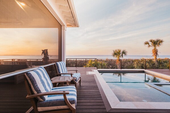 - Ultimate Oceanfront Living: Wake up to panoramic ocean and river views. Enjoy morning coffee on the expansive oceanfront deck, relax in the screened-in porch, or unwind beside the private heated pool.