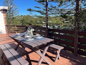 Perched at the north end of Mollymook Beach, this spacious six-bedroom holiday home boasts beautiful ocean views from its deck and upstairs living areas. Perfect for larger families, it offers open-plan living and dining rooms with a smart TV and comfortable lounges, two decks to relax on, a kitchen equipped with modern appliances including cooktop oven microwave dishwasher plus linen zero co products provided.