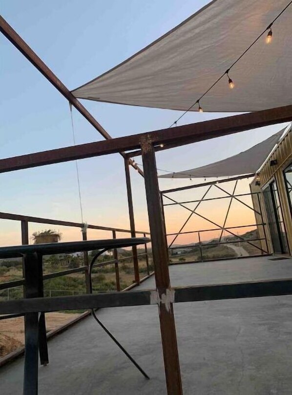 Escape to Viento in the heart of Valle de Guadalupe, where nature and serenity await. This peaceful 1-bedroom eco-friendly space offers a cozy seating area, kitchen with full-size refrigerator, and private terrace perfect for sunrise/sunset views. Marked parking spaces are provided on property.
