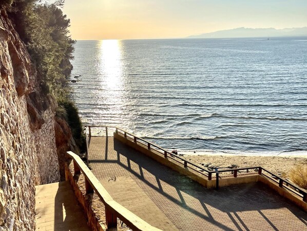 On beach with water park, near PortAventura World
