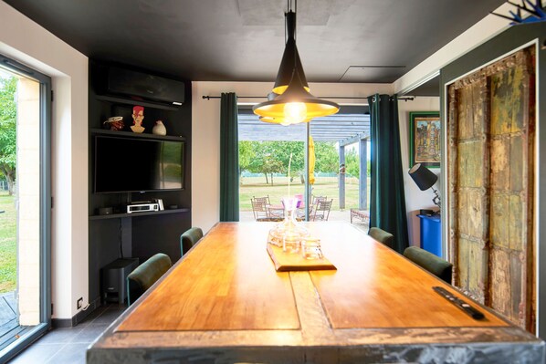 You will enjoy a fully equipped modern kitchen, air conditioning, high-speed Wi-Fi, a TV with video on demand, a workspace, and a washing machine. The single-level access ensures optimal comfort for everyone.
