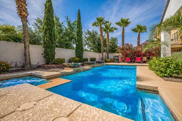 Staying in to enjoy Arizona continuous summers!? Be sure to check out our private heated POOL and SPA. It is an amazing treat! We heat the pool and spa year round to at least 85 degrees for the pool and 100 degrees for the spa.