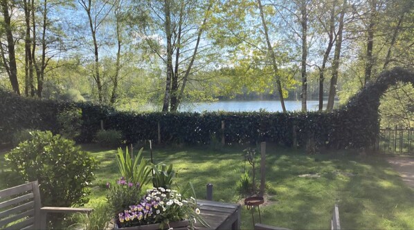 Lakefront holiday home with kitchen and patio
