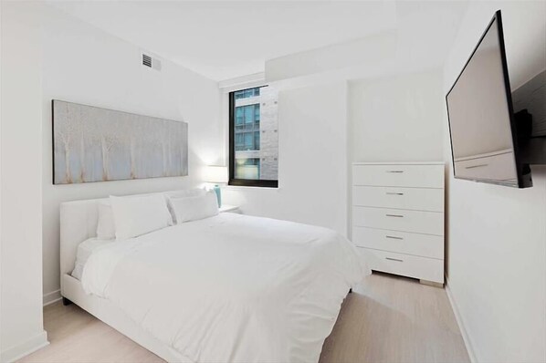 In the heart of D.C's NoMa neighborhood, this modern retreat offers a luxurious stay. Enjoy upscale amenities like an in-unit washer/dryer and spa-style fitness center with yoga, spin, and Cross Fit classes. Access to Marriot Rooftop bar is just steps away.