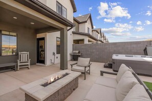 Sunseekers Escape: Private Hot Tub + Fire Table provides a hot tub and more.