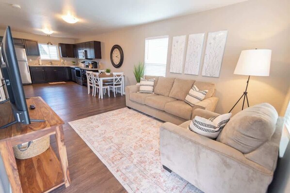 Full Kitchen, In-Suite Laundry, Wi-Fi, and Parking