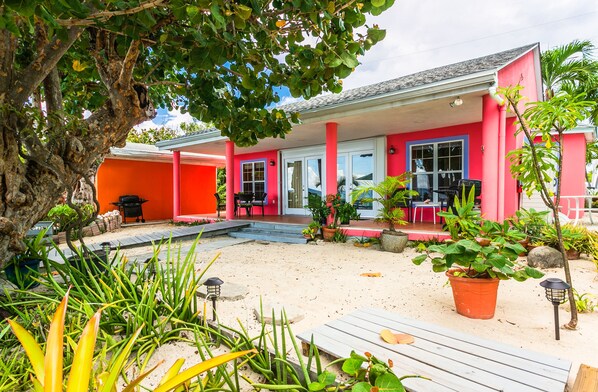 Located directly on Seven Mile Beach along Boggy Sand Road in West Bay, our exquisite beachfront cottage invites you to immerse yourself in the charm of Caymanian heritage. Situated on the National Trust's Historical Walking Tour of old Caymanian homes, this idyllic retreat is nestled among mature seagrape trees at the tranquil northern end of Seven Mile Beach, offering a serene escape from the bustling resort areas. Please remember your water socks, as sometimes the beach can get a little rocky!