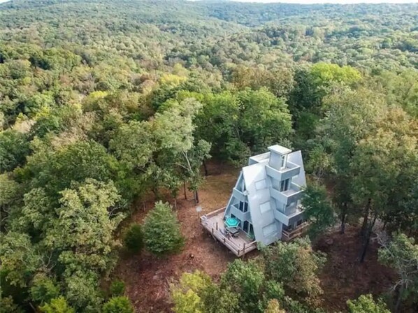 MODERN 3 STORY A-FRAME Cabin located in the Ozark Mountains with a seasonal overlooking White River. There is 8 balconies, 1 wooden deck and a private sundeck. The cabin is 7 minutes to the city park, 15 minutes to Fayetteville AR and 25 minutes to Devils Den State Park where there is family/couple attractions, bike/walking trails & so much more.