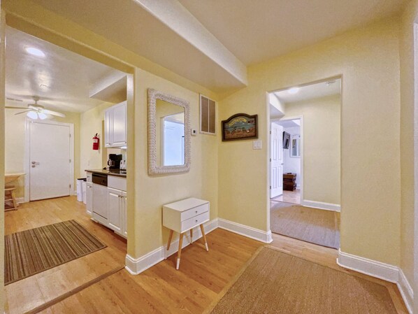 This beautiful bayside four bedroom, two bathroom, second level unit is a truly unique find offering economical accommodations in the peak of the Summer Season. Located just three and a half blocks from the free Wildwood Beaches and Boardwalk, this unit is a great economical opportunity to spend a weekend at the Shore. An additional advantage of this vacation rental is the adjoining door with the connected unit located in the kitchen. For larger parties reserving both units, guests would be able to pass through either side with ease. *See VRBO ID Number: 7519113* The property owner(s) have worked hard to deep clean and update the property during the winters of 2021 & 2022. Alleviate any parking concerns with onsite parking for two cars in the parking spots directly out front of the unit entry, or free street parking on Oak Ave. Bike racks, grills, and picnic tables are available for use outside of the three primary unit entrances. With onsite parking for 2 cars, a great location in proximity to the center of town and the Wildwood Beaches and Boardwalk, and accommodations for ten people, this vacation rental is a great choice for anyone. Exquisite dining options just off nearby New Jersey and Pacific Avenues include Alfe’s Italian Restaurant, Comercial Mexicana, Cattle ‘n Clover Irish Pub, Dragon House Chinese Restaurant, and for a quick bite, the new Krispy Krunchy Chicken. Enjoy plenty of shopping and entertainment options in a centralized location near the Boardwalk and Beach between Surfside Pier / Oceanside Oasis and Morey’s Pier / Raging Waters. You’ll need your strength for all those rides, be sure to grab some grub from Sam’s Pizza Palace or Curleys Fries. Also, don’t forget to stop at Laura’s Fudge for some saltwater taffy and fudge before the trip home!