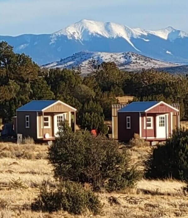 Nestled near the Grand Canyon, Off Grid B&B offers a tranquil retreat with private cabins, each featuring a 10-inch Serta memory foam queen-size mattress and themed decor. Unwind by the large fire pit in the outdoor lounge or enjoy stargazing with unobstructed views of San Francisco Peaks. With amenities like free coffee and snacks, WiFi, laundry service, pet-sitting options for day trips to Valle or Flagstaff.