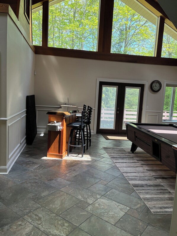 Charming home with fireplace, game room, full kitchen, gas grill, & balcony
