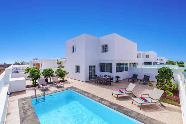 At Villa Naya, you'll find a warm and welcoming villa with spacious interiors and a large pool. Relax in the sun on the expansive terrace or take a short walk to Marina Rubicon for dining, shopping, and stunning views of the surrounding mountains.