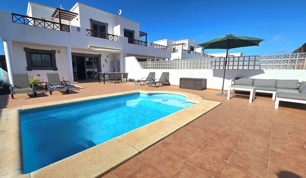Villa with heated pool & great outside space, 15 minutes walk to Marina Rubicon