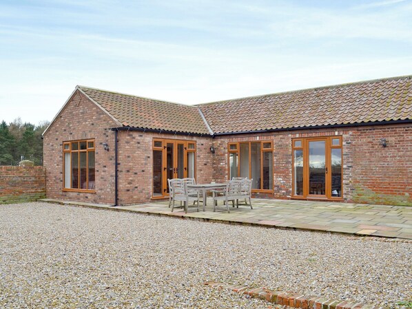 Bathroom: Bath, Cubicle Shower, Toilet. Oil underfloor central heating, electricity, bed linen, towels and Wi-Fi included. Enclosed courtyard garden with patio, garden furniture and gas barbecue. Private parking for 3 cars. No smoking. Please note: There is a small trough in the garden.. Situated in complete seclusion, this converted, single storey barn is surrounded by fields, woodland and an abundance of wildlife, including red kite, buzzards, barn owls and deer. With peace, tranquillity, aircon and a good standard of home comforts, visitors are assured a totally relaxing break in this romantic hideaway. The surrounding area is worth exploring, with the Yorkshire Dales and the North York Moors, York, Thirsk, Harrogate, Ripon, Scarborough, Whitby and Filey. Golf nearby. Fishing available on site free of charge. Shop 4½ miles, pub 1 mile and restaurant 2½ miles. Can be booked with property ref 25136 to accommodate up to 8 guests.