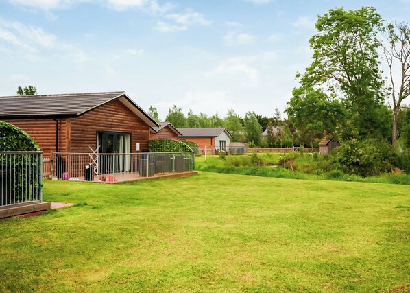 A stunning three bedroom 20ft Lodge built in 2021, consisting of master bedroom with a king-size bed, with en suite shower room, twin room consisting of two single beds, and a bunk bedroom (for children), consisting of two smaller bunk beds, main bathroom with shower over bath, spacious open plan lounge with electric wood burning stove and dining area. The well-equipped kitchen contains an toaster, kettle, microwave, 2-ring hob, main oven, fridge with freezer box and dishwasher. An iron/ironing board and hairdryer are also supplied. Spacious veranda with private luxury hot tub and garden furniture over looking the lake. The perfect place to relax after exploring the area.. Flaxton Meadows Luxury Lodges is a part of our Evermore Lodge Holidays Collection in a beautiful park comprising of a bespoke and luxury accommodation coupled with private hot tubs boasting wonderful views over the scenic countryside. The lodges are wrapped around a small lake. This is the perfect place for romantic escapes, blissful breaks and outdoor adventures with friends and family.