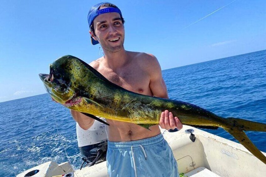 Also if we catch yellowfin tuna or goldfish, when you return to land you can take pieces of fish to the house or hotel to cook a delicious meal or here on the beach we will look for a local restaurant that can prepare you a delicious garlic goldfish or a tuna steak on posts!! for a low cost.
