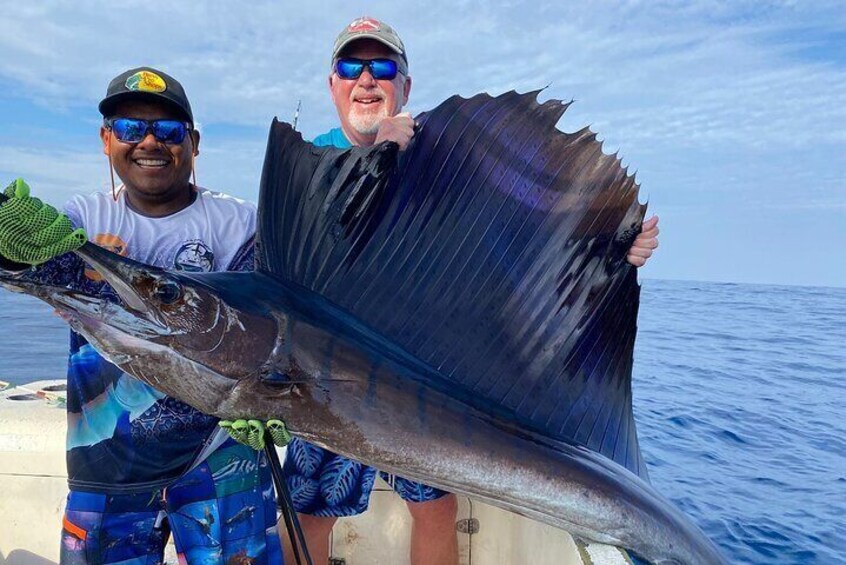 In the rich waters of Puerto Escondido, we have species that are the dream of fishermen. We have sailfish, blue marlin, striped marlin, goldfish, and yellowfin tuna. Come on our adventure, whether you are a pro or a novice, we will make sure this is the adventure of a lifetime. We will teach you how to hook your own fish, so you can feel the power of these magnificent fish. The adrenaline runs throughout the body! We have 29 years of experience, quality equipment, and good bait preparation will ensure that you have a great day at sea! We will leave Puerto Angelito beach at 7 am in a 27-foot boat, in 10 minutes we will be in the deep zone where the pelagics live and we will start our lure or bait trap, depending on what the conditions are telling us at that time. moment. We fish from 5 to 8 hours, always looking for action, looking for birds, dolphins, water colour, temperature currents, or big trees floating in the ocean with lots of goldfish around them.