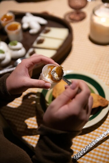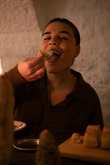 Step into an authentic trullo nestled in the quiet of the countryside, where stone walls and soft lighting create an atmosphere of warmth and slow living. Begin your cheese and wine tasting, an immersive experience designed to celebrate the finest local craftsmanship.