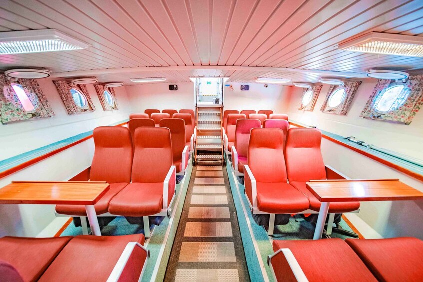 Board the Sea Runner, equipped with modern amenities, including a toilet, screens for presentations, and WiFi access, ensuring a truly enjoyable experience for all guests. Choose to relax in the heated indoor seating area or take in the scenery from the outdoor decks.