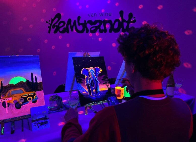 Paint and Sip in the Dark at Rembrandt van Wine Amsterdam