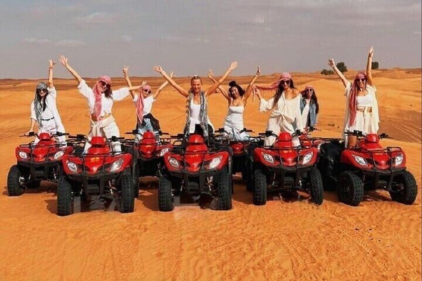 Gear up for an unforgettable full-day desert safari in Sharm El Sheikh that fuses adrenaline-fueled quad biking with an authentic taste of Bedouin culture. Kick off your journey with a high-speed quad bike ride across the golden sands and rugged trails of the Sinai Desert. Feel the rush as you weave through towering dunes and rocky landscapes, surrounded by breathtaking desert vistas that stretch for miles. After your off-road adventure, unwind at a traditional Bedouin camp where you're welcomed with warm hospitality and a flavourful Bedouin-style dinner. Feast on a variety of local delicacies while soaking in the serene desert atmosphere. As the sun sets, the magic continues with an evening of live cultural entertainment. Enjoy traditional music and mesmerising dance performances under the stars—an enchanting glimpse into the rich heritage of the Bedouin people. Whether you're a thrill-seeker or culture lover, this action-packed desert safari promises a unique and immersive experience you'll never forget.