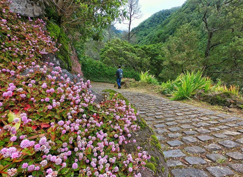 The tour begins in the parish of Faial da Terra, where we will start a hike along a stream, with a moderate ascent through trees, creating a peaceful and pleasant atmosphere. We continue through the forest, crossing wooden bridges and stone paths, following routes once used by the local inhabitants. The destination is the Salto do Prego waterfall, a special spot where we will take a break. The waterfall has a natural pool, ideal for a quick swim or simply relaxing and enjoying the surroundings.