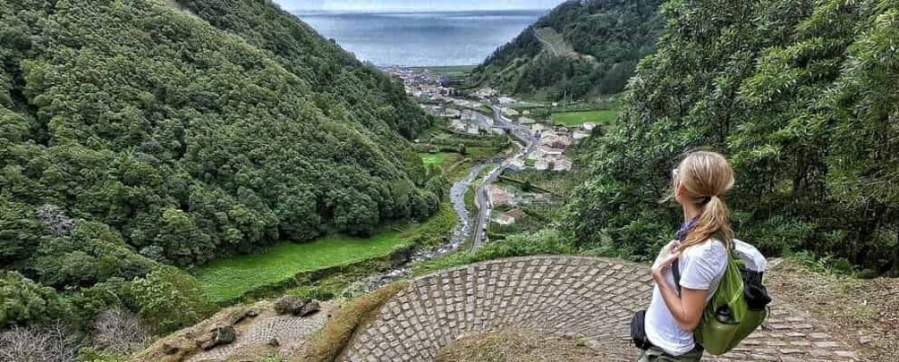 On the return, the trail takes us to the village of Sanguinho, an old settlement that was abandoned several decades ago and is currently being restored. This route offers panoramic views of the valley and the ocean, completing the hike with a connection to the region’s past.