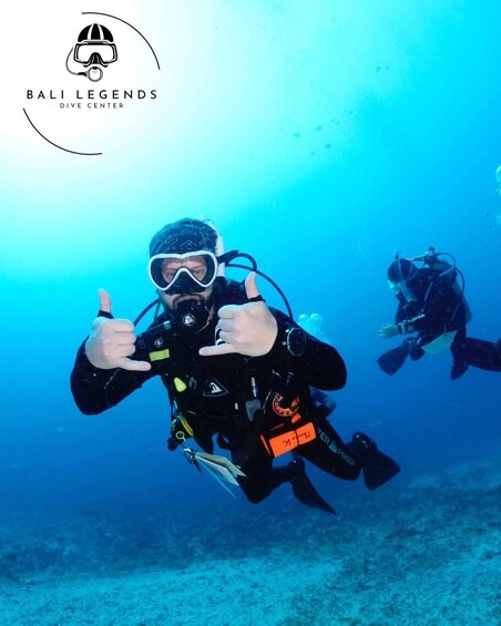 Meet at Bali Legends Dive Centre in Sanur. Join a full-day dive trip to Nusa Penida with 3 guided dives, boat transfer, lunch, drinks, fresh towel.