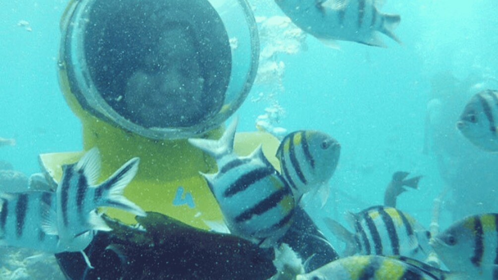First, you'll immerse yourself in the unique experience of a Sea Walk. Equipped with a special helmet that allows you to breathe underwater, you'll descend to the ocean floor and stroll among the vibrant coral reefs. Marvel at the colourful marine life as schools of tropical fish swim around you, and take in the enchanting beauty of Bali’s underwater paradise.