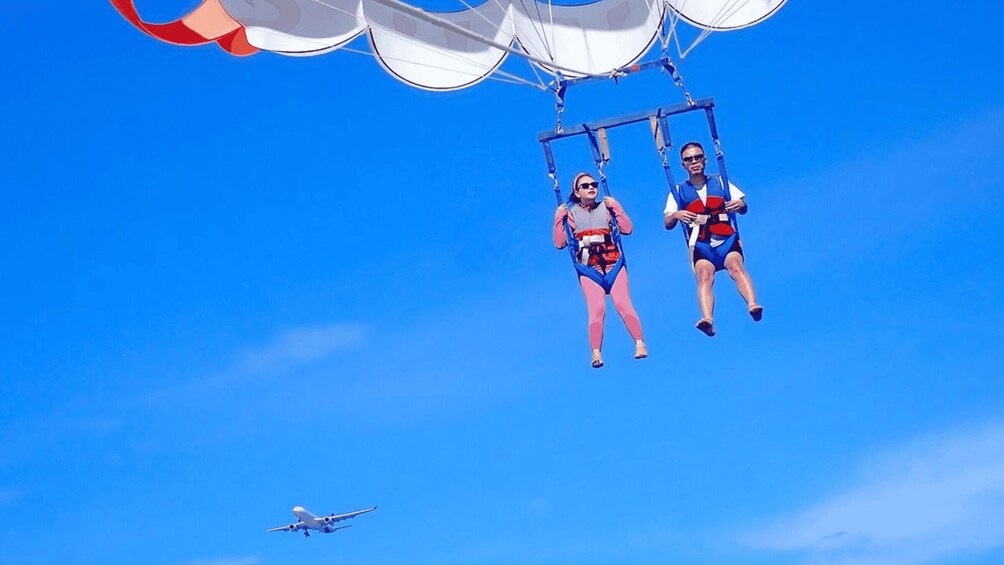 After the jetski adventure, it's time to take to the skies with parasailing. Strap into your harness, and as the boat choices up speed, you’ll lift off and soar high above the turquoise waters. Enjoy a bird's-eye view of Bali’s picturesque coastline, with panoramic vistas stretching from the sandy beaches to the lush inland hills. The sense of freedom and the stunning aerial perspectives make parasailing an unforgettable highlight of your day.