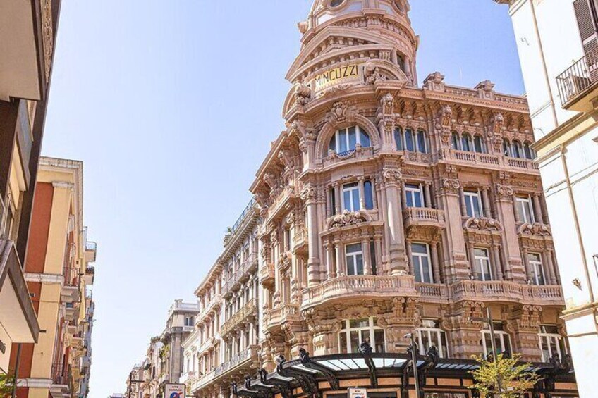 Imagine being in the elegant heart of Bari. In front of you is Via Sparano, the street that has accompanied the life of the city for more than a century. It is the “good living room” of Bari, the place where steps become lighter and the gaze rises spontaneously to follow the harmonious lines of the buildings in the centre.