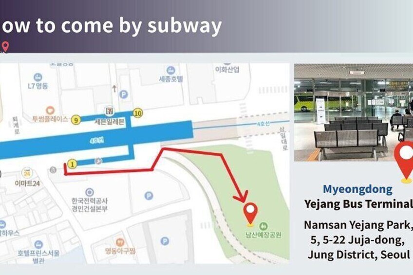 Yejang Bus Terminal: Meets at Yejang Bus Terminal. (See tour photos for directions from Myeongdong Station Exit 1)