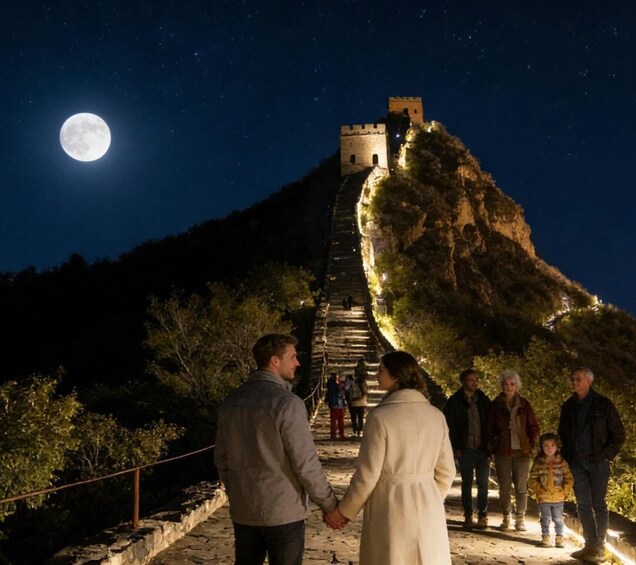 • Day-night views: Great Wall sunset+illuminated night scenes of Gubei Water Town