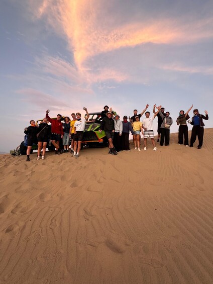Buggy tour in the Huacachina Desert, sunset, and sandboarding