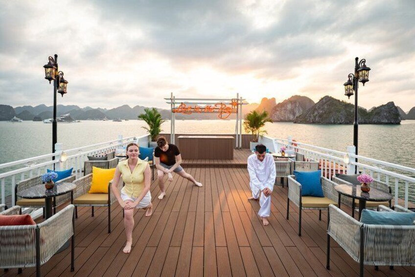 Deluxe Room private Balcony: Deluxe Cabin with private Balcony on the second floor, departs from Tuan Chau Marina (without transport from Hanoi)