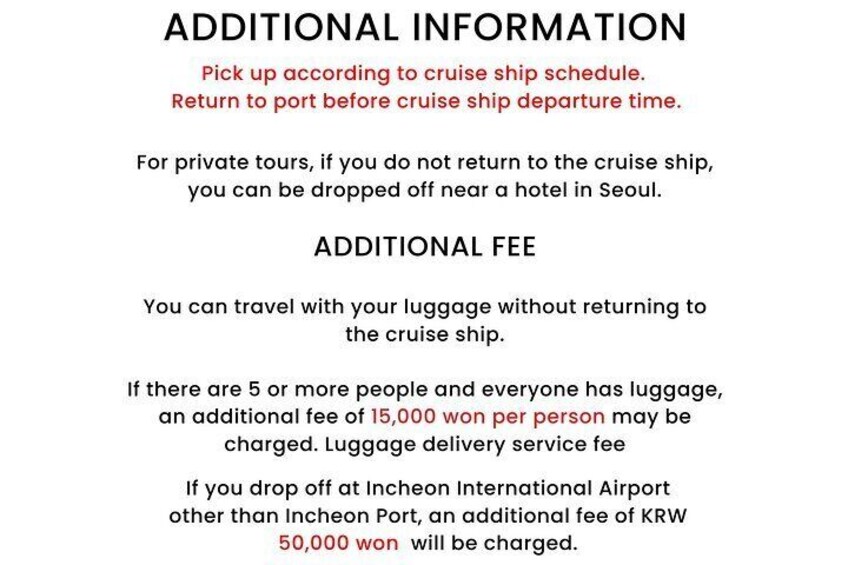 Cruise Guests Stopover Incheon Port Seoul Private Car Tour
