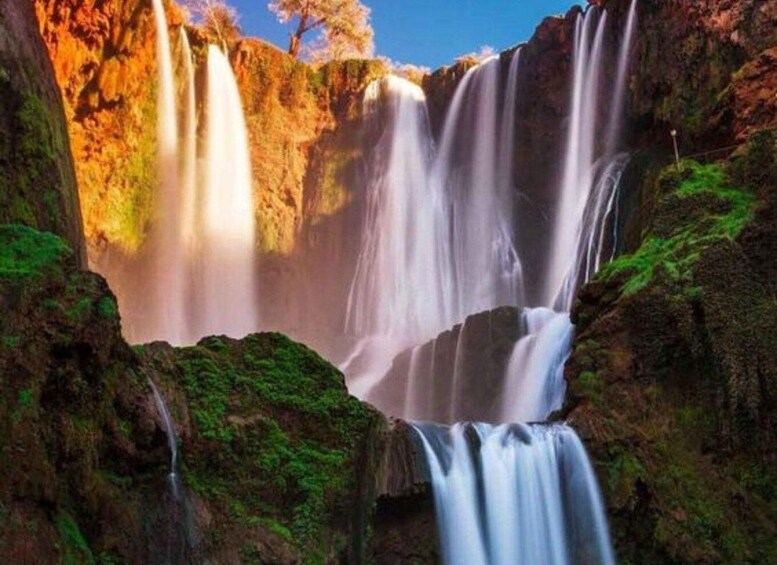 We will driving about 2H30min to get to the Waterfalls of Ouzoud with one 15min break on our way. Highest and beautiful sights not only in Morocco but in the north Africa. You will have a walk through the passes in the mountain under Olive trees' shade enjoying the clean air with your local guide, who will explain every detail about anything that you should know also to answer your question like how is the Barber life there, how old are things, how locals use things. have a boat ride under the Waterfalls, be careful with your phones lol.