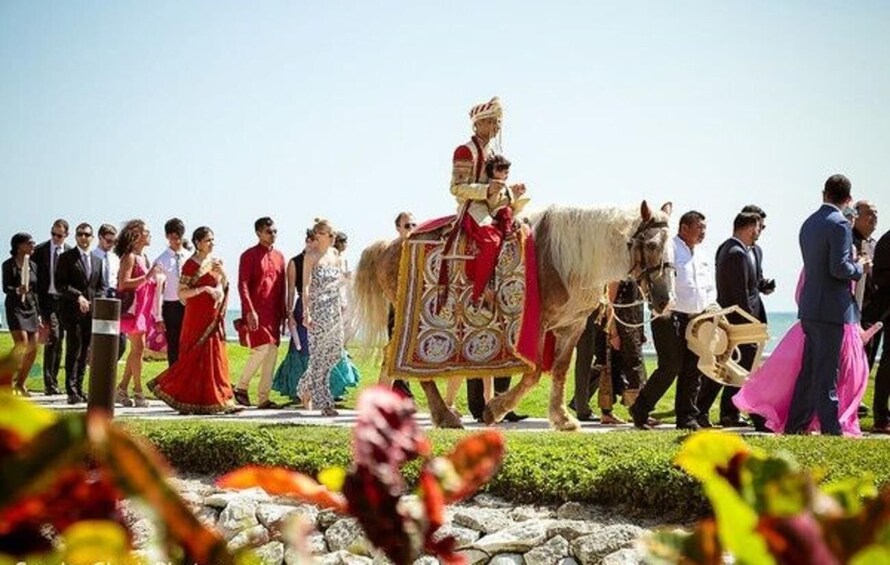 Band Baja Baraat : Is a lively Wedding procession where the Groom will arrive at the Venue to claim his Bride, accompanied by his family and friends, dancing and celebrating with loud music, dances and fireworks.