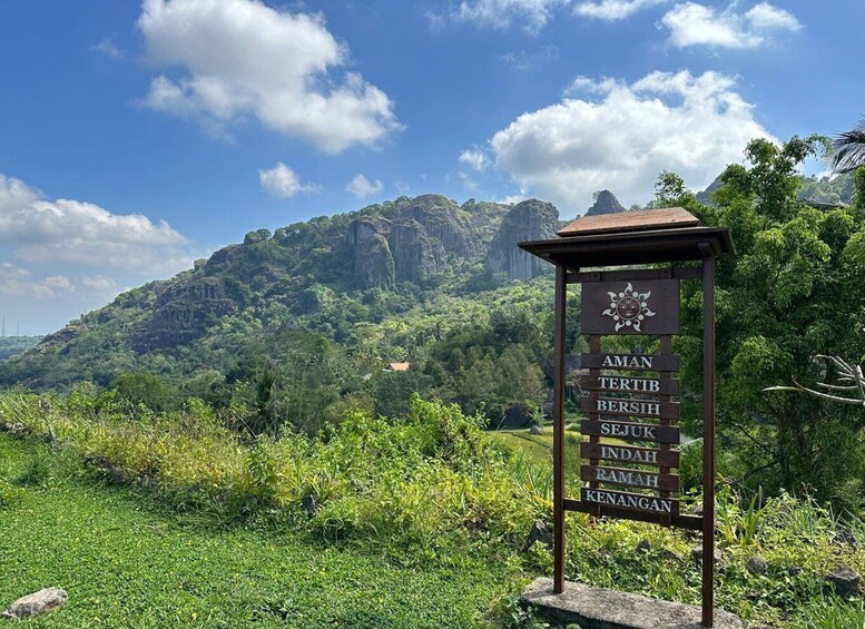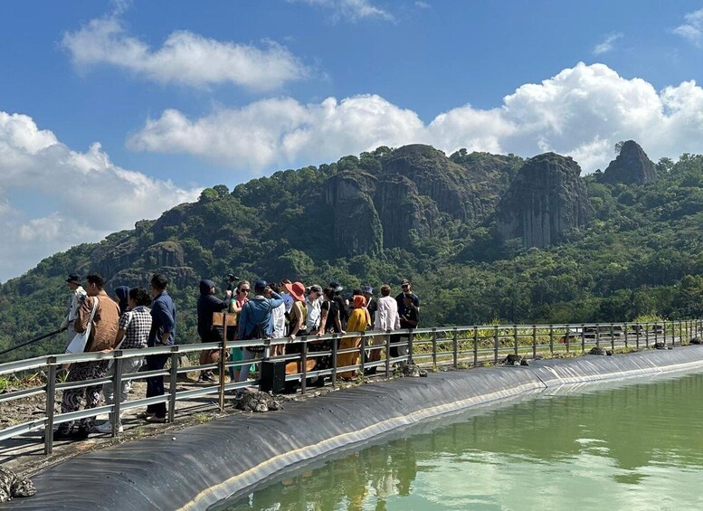 After your underground adventure, the journey continues to the ancient volcano Nglanggeran, located in the heart of Gunungkidul. Believed to be more than 60 million years old, Nglanggeran is one of the oldest volcanoes in Java. Its dramatic rocky landscape, formed by ancient volcanic activity, provides a unique backdrop for a scenic hike. As you trek to the top, you’ll be surrounded by lush greenery, striking rock formations, and the sound of nature all around.