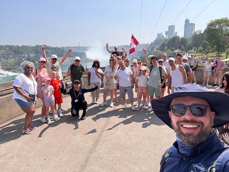 Experience Niagara Falls up close on a relaxing guided walk from Fallsview to the famous Niagara City Cruise. Explore landmarks like the Illumination Tower, Skylon Tower, Tesla Plaza before boarding your thrilling Voyage to the Falls boat ride.