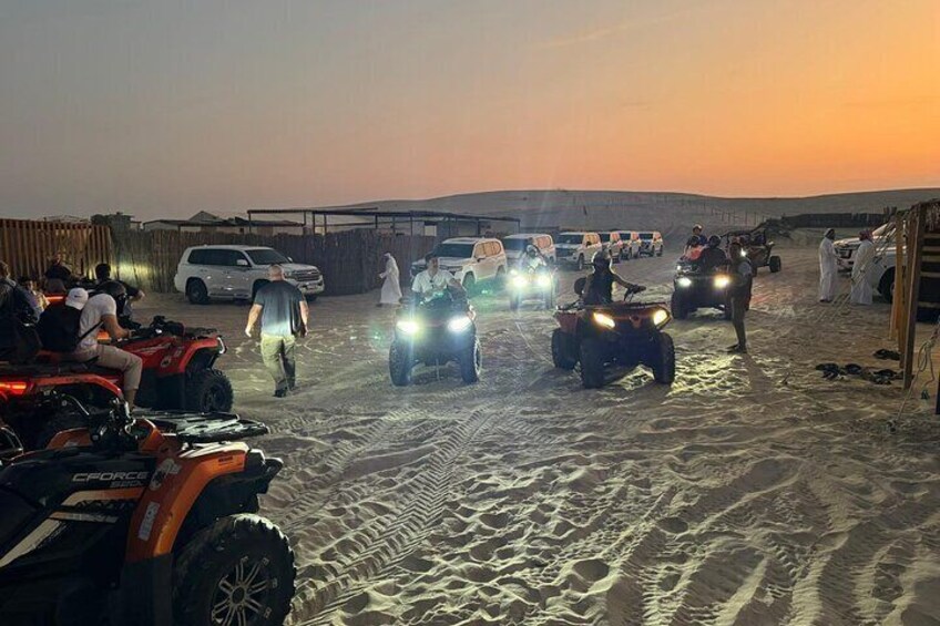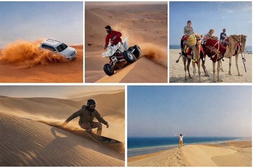 Private Tour: This option is private tour, Quad Bike Riding 30 Minutes, Short Camel Ride, Dune Bashing, visit inland sea and SandBoarding