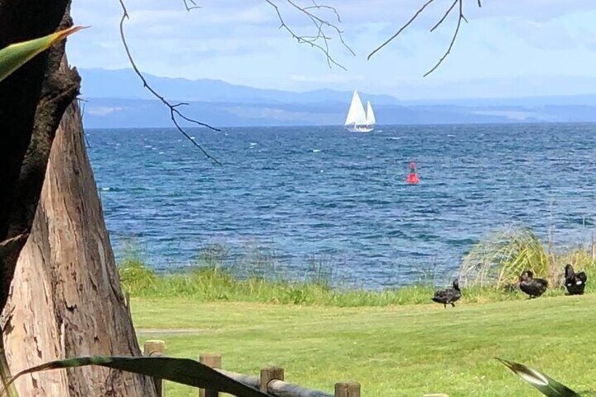 Evening Eco Sailing Adventure to Māori Rock Carvings Lake Taupō