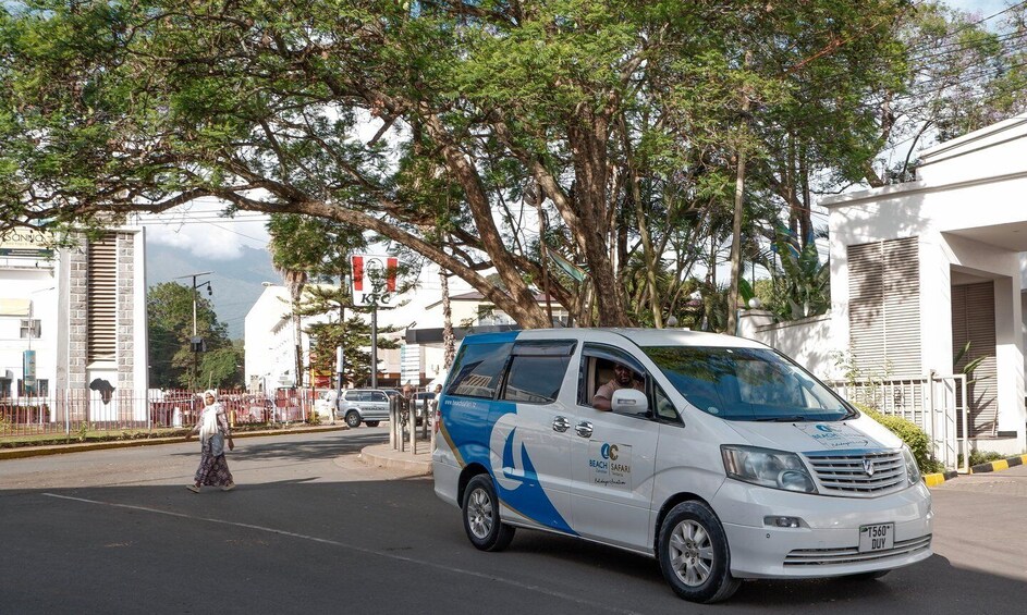 This option starts from the meeting point : Arusha Clock tower. Kindly make sure you meet only our guide. You could recognise him as our guide is wearing our brown uniform with written beach safari holidays aviation.